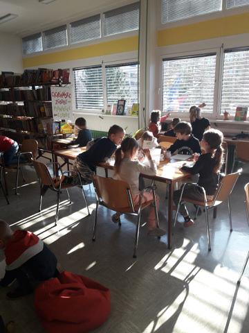Vas zanima, kaj delajo učenci 1.B in 2.B razreda ob sredah, ko se pouk zaključi? Ja, z OPB oddelkom gredo na bralne urice. Učiteljici Helena in Barbara jih pripeljeta v knjižnico, kjer poslušajo pravljice in nato še kaj poustvarjajo. Imajo se "fajn".