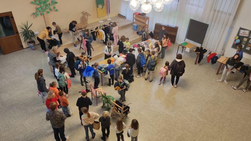 Naša šolska izmenjava oblačil 'Cunjami' je bila polna smeha in navdušenja. Učenci so z veseljem raziskovali bogato ponudbo oblačil in si med seboj pomagali pri izbiri. Ob koncu dogodka so odšli domov z novimi oblačili in zadovoljstvom, da so prispevali k bolj trajnostnemu načinu življenja.