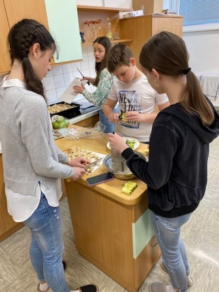 V okviru Zelenega aprila smo učence vzpodbudil tudi k varčnejši porabi hrane. V ta namen je potekala kuharska delavnica 'Reciklirana kuhinja', kjer so ustvarjali jedi iz starega (suhega) kruha. Učenci so pokazali svoje kuharsko znanje in ob tem uživali.