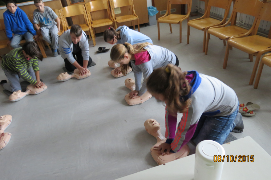 Včeraj smo se, kot po navadi, zbudili in bili presenečeni, ker ni bilo jutranje telovadbe. Komaj smo odprli oči, že nas je "vrglo" po tleh. Spomnili smo se, da je danes predzadnji dan in da gremo zvečer v disco. Komaj smo čakali, a morali smo preživeti še celodnevni program. Še posebej smo se veselili oživljanja. Razdelili smo se v tri skupine in pričeli s programom. Prva skupina je odšla na oživljanje. Od smeha nad lutkami smo tudi mi skoraj potrebovali oživljanje. Druga skupina je imela na urniku lokostrelstvo, tretja pa se je zabavala s povoji, opornicami in drugimi pripomočki. Imeli so predavanje ne temo poškodbe kosti in sklepov. Drug drugemu so "pomagali" in se ob tem nemalokrat zmotili. Skupine so se menjavale in kar je najpomembneje, učitelji so bili zadovoljni, saj kot pravijo oni, nas še toča "al" pa sneg ne ustavita. Zanje smo po domače povedano "D best" generacija.