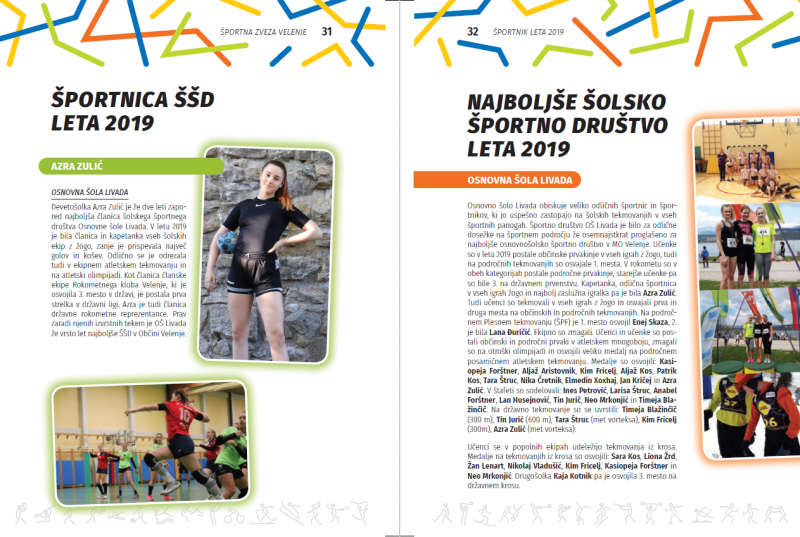 športnih panogah. Športno društvo OŠ Livada je bilo za odlične dosežke na športnem področju že osemnajstkrat proglašeno za najboljše osnovnošolsko športno društvo v MO Velenje. Učenke so v letu 2019 postale občinske prvakinje v vseh igrah z žogo, tudi na področnih tekmovanjih so osvajale 1. mesta. V rokometu so v obeh kategorijah postale področne prvakinje, starejše učenke pa so bile 3. na državnem prvenstvu. Kapetanka, odlična športnica v vseh igrah žogo in najbolj zaslužna igralka pa je bila Azra Zulić.