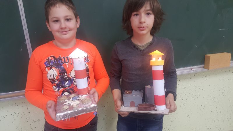 Pri izbirnih vsebinah tehnike smo izdelali svetilnike. Učenci so se zelo potrudili in poleg njih izdelali še otočke, na katerih le-ti stojijo.