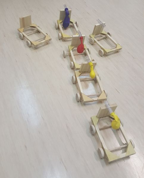 Učenci 4. razreda smo zabijali, žagali in lepili. Nastali so zabojčki za naše razne drobnarije in vozički na pogon z balonom.