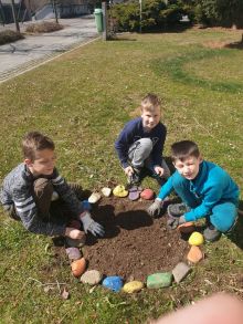 Pred šolo imamo gredice s trajnicami, začimbnicami in eno, v katero vsako leto nasadimo sončnice.